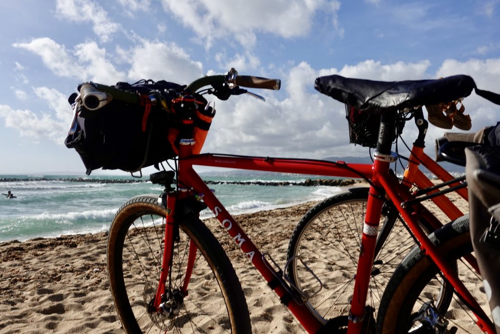 In November Anna and I went down to Palma on the train with our bicycles. First we pedaled from Estación Intermodal down to the bike path along the beach. We rode about 5 kilometers out and found a little beach to set up a few photos. It was our wedding anniversary and we wanted to celebrate in our island fashion on the beach.